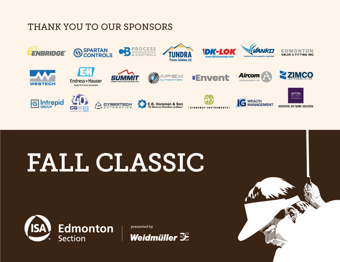 We're pleased to announce that our annual ISA Edmonton Section Fall Classic golf tournament, presented by Weidmuller, is a go! It will take place on Friday, September 11 at The Quarry. Expect a first-class experience that includes: breakfast, a specialty snack, a Craft beer, lunch, a fun photo-op and more!